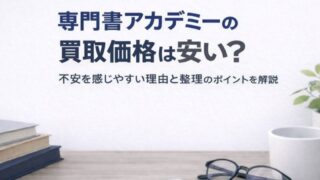 疑問・不安 専門書アカデミーの買取価格は安い?価格の決まり方と注意点をやさしく整理 専門書アカデミーの買取価格は安いのか不安な人向けに、価格の決まり方(相場・状態・需要)や安く感じやすい理由、送る前の注意点を整理。高い・安いを断定せず、判断材料を増やすための情報をまとめています。 2026.01.18 疑問・不安